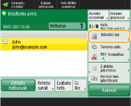 <Jatorrizko edukiaren orient.> hautatu <Goian urruneko ertzean> edo <Goian alboko ertzean> jatorrizkoaren orientazioaren arabera sakatu <Ados>.Adierazi faxak dauzkaten zenbait helmuga<Gaitu faxa eskaneatu eta bidali funtzioan> aukeran <Bai> ezartzeak eskanerraren oinarrizko funtzioen pantailatik fax-helmugak zehaztea ahalbidetzen dizu (<Bistaratu fax-funtzioa>). Ezarpen hau erabilgarria hau hainbat helmuga zehazteko, faxak barne, adibidez fitxategi-zerbitzari batean bidalitako fax baten kopia bat gordetzean.