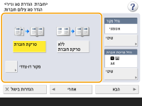 בעת ביצוע צילום חוברות עם מסמכי מקור דו-צדדיים, לחץ על <מקור דו-צדדי> ובחר <סוג ספר> או <סוג לוח שנה> לפי הצורך.