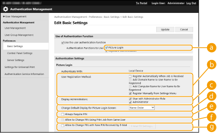 If the authentication method is [Picture Login] and [Register Automatically When Job Is Received] is enabled