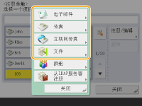 在单触按钮中注册的接收方可以合并为一个群组并注册为一个接收方。有关详细信息,请参阅 在单触按钮中注册一个群组。 要更改或删除单触按钮中注册的接收方信息,请参阅 编辑单触按钮中的注册接收方。 存储于单触按钮中的接收方也会显示在“本地地址簿”中。 |