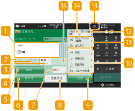按<传真> (<主页>屏幕)可以显示“基本传真功能”屏幕。