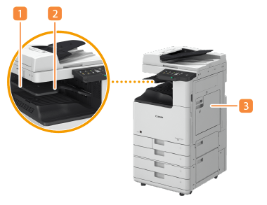 您可同時安裝內置式雙向紙盤-M和影本紙盤-T,以新增額外的輸出紙盤。若想在各種功能(例如影印、列印及傳真功能)使用不同輸出紙盤,這非常方便。