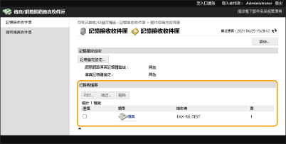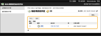 ![]() | 您可以使用遠端使用者介面來列印、傳送或刪除暫時儲存在傳真/I-Fax 收件匣中的傳真和 I-fax。 |