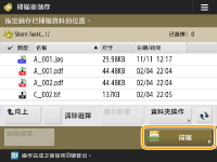 請遵循下列程序以將掃描文件儲存到其他 Canon 多功能印表機的進階郵件信箱中,或儲存到 Windows 伺服器上。