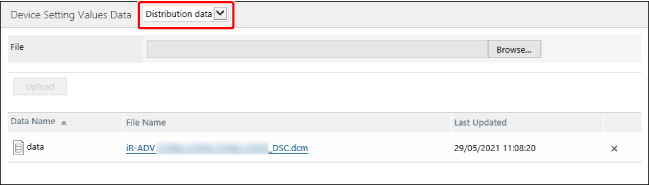 Select [Distribution data] from the drop-down list on the top of the [Device Setting Values Data] page.