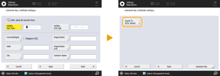 /  (Settings/Registration)  <Management Settings>  <Device Management>  <Certificate Settings>  <Generate Key>  <Generate Network Communication Key>