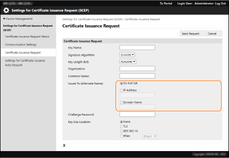 <Issued To (Alternate Name)> can be set in the certificate setting screen.