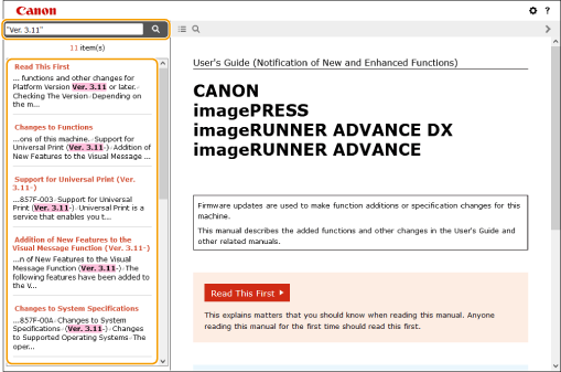 Search list pageSearch by keywordSearching by entering the version as a keyword (e.g. "Ver. 3.11") displays a list of pages that include that keyword. You can then search through the listed pages. |