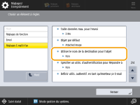 <Utiliser le nom de la destination pour l'objet> | <Oui>,<Non> | Oui | Non | Oui | Non | C | Informations de base Réglages/Enregistrement |