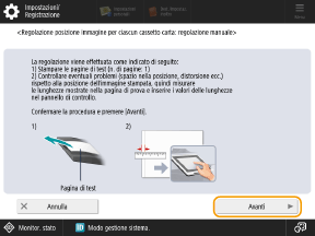 Premere <Avvio stampa> per stampare nuovamente la pagina di test e verificare i risultati della regolazione.