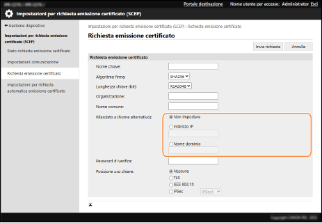 <Rilasciato a (Nome alternativo)> | Sì | Sì | Sì | No | No | - | |