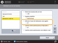<Utilizzare il nome del destinatario come oggetto> | <On>,<Off> | Sì | No | Sì | No | C | Informazioni principali di Impostazioni/Registrazione |