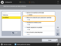 Puede especificar el tiempo durante el que el equipo no aceptará la segunda vez y posteriores que se pulse una tecla cuando se pulsa repetidamente de forma involuntaria una tecla del teclado en pantalla. Configure esta opción en casos como cuando desea introducir un solo carácter pero se introduce varias veces el mismo carácter.