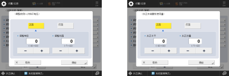 如果整个图像都变得模糊或损坏,而不只是前缘上的图像,请更改<调整二次转印电压>。 调整<调整前侧二次转印电压>可能会影响<纠正末端墨粉使用量>和<调整图像位置>的设置。请根据需要重新调整这些设置。 按照以下指导准则执行调整。 <调整等级>:正向提高此值会增加尾端图像问题的效果。此值过高可能会导致高浓度区域缺失墨粉。 <纠正总量>:正向提高此值会增加以前缘方向(从纸张尾端看时),从纸张尾端进行控制的距离。距离以1 mm的增量进行增加。 如果执行调整没有解决问题,请调整<调整二次转印电压>或<调整前侧二次转印电压>。在这种情况下,降低当前的二次转印电压值可能有效,但应逐渐进行调整,因为这可能会影响图像。 |
