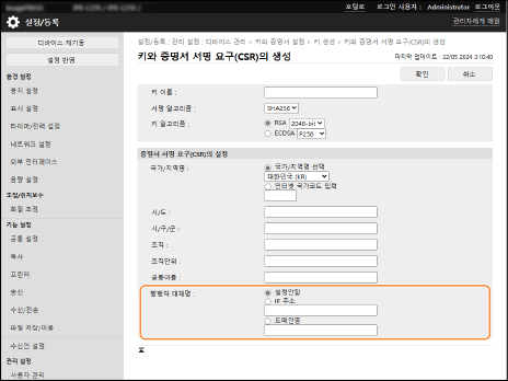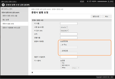 <공통이름> (기기의 IP 주소 또는 FQDN (최대 41문자)) | 예 | 예 | 예 | 아니오 | 아니오 | - | |