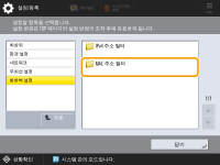 "설정/등록 표"를 참조하십시오.항목 | 설정 설명 | DeviceAdmin | NetworkAdmin | 리모트 UI에서 설정 가능 | 장치 정보 전달 가능 여부 | 모두 가져오기 기능 | 리모트 UI로 내보내는 경우의 항목이름 |