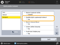 „Tabulka Nastavení/Uložení“ v dokumentu „Uživatelská příručka“.Položka | Popis nastavení | DeviceAdmin | NetworkAdmin | Lze nastavit v Remote UI (Vzdálené UR) | Dostupné doručení informací o zařízení | Funkce Importovat vše | Název položky při exportování pomocí Remote UI (Vzdálené UR) |