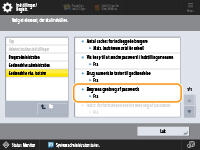 <Begræns genbrug af passwords> | <Til>, <Fra> Når <Til> er indstillet: <Antal forbudte seneste passwords>: 1 til 24 | Nej | Nej | Ja | Nej | C | Settings/Registration Basic Information |