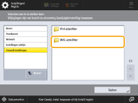 <Registreren> (maximaal 100 Mac-adressen), <Bewerken>, <Verwijderen> | Nee | Ja | Ja | Nee | A | Settings/Registration Basic Information | |