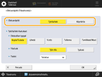 <Oletusnäyttö> | <Työtila/loki>, <Käyttötila> | Kyllä | Kyllä | Ei | Ei | C | Settings/Registration Basic Information |