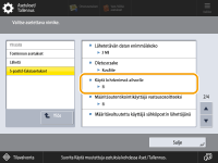 "Asetukset/Tallennus-taulukko" julkaisussa "Käyttöopas".Kohde | Asetuksen kuvaus | DeviceAdmin | NetworkAdmin | Voidaan asettaa Remote UI (Etäkäyttöliittymä) -sovelluksesta | Laitetietojen toimitus käytettävissä | Tuo kaikki -toiminto | Kohteen nimi tuotaessa Remote UI (Etäkäyttöliittymä) -sovelluksesta |
