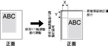 增加此設定值使影像沿X軸方向向紙張的右邊移動。減小此設定值使影像沿X軸方向向紙張的左邊移動。