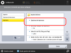 El almacenamiento no se puede inicializar en las siguientes condiciones: Cuando se están recibiendo o imprimiendo datos. (Se recomienda quitar el cable que conecta el equipo al concentrador para que la misma no reciba datos de impresión). Cuando se están instalando o desinstalando fuentes. Los pasos explicados a continuación son para inicializar el área de almacenamiento PCL. Para inicializar el área de almacenamiento PS, siga los mismos pasos excepto el paso 4, donde deberá seleccionar [Inicializar almacenamiento PS]. |