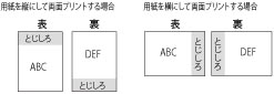 とじる位置を、用紙の長い辺にするか短い辺にするかを設定します。両面プリントをしてとじるときには、表面と裏面とで、とじしろの位置が自動的に調整されます。