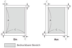 Der bedruckbare Bereich auf A4-Papier liegt in folgender Entfernung von den Kanten: 4,2 mm oben und unten sowie 3,4 mm an der linken und rechten Papierkante. Nur die Breite ändert sich.