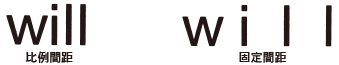 每一種字型中每個字元的寬度以一個確定的點數表示,和其他字元各不相同。例如,字母「W」比字母「I」寬。有兩種方式列印不同寬度的字母︰不管字母實際寬度如何,以相同間距列印所有字母;或者變更字母間距以容納不同的字母寬度。以相同間距列印所有字母稱為「固定間距」,變更字母間距以容納不同的字母寬度稱為「比例間距」。