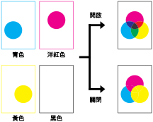 此設定僅適用於設定了疊印屬性的資料。 此設定不適用於疊印特別色。 |