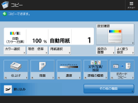 <ホーム>画面で機能ボタンを押すと、コピー、ファクス、スキャンといった主要な機能を使うための「基本画面」が表示されます。基本画面は機能によって表示も設定できることも異なりますが、いずれの機能も利用シーンに合わせて使いやすくすることができます。基本画面をカスタマイズする