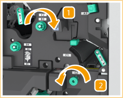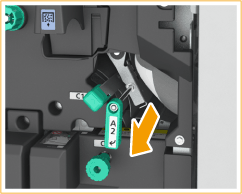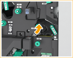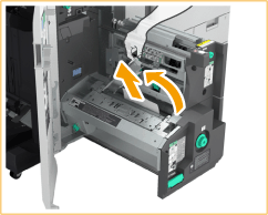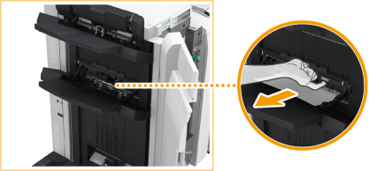Si l'Unité d'insertion de Document-R est montée adjacente au finisseur, une partie de l'unité d'insertion de document peut interférer avec le finisseur lors du dégagement des bourrages papier. Soulevez l'unité d'insertion de document avant de retirer le papier coincé dans le finisseur.