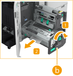 Si le Massicot-G est monté sur l'appareil, la rotation de la molette fait passer le papier coincé dans la courroie d'alimentation du Massicot-G.