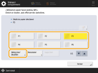 Si <Toujours spécifier> sous<Régl. par défaut plateau multifonctions> est réglé sur <Papier favori>, un écran s'affiche pour vous permettre de sélectionner votre « Papier favori » lorsque vous chargez le papier dans le plateau multifonctions. <Régl. par défaut plateau multifonctions> |