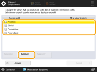 Sélectionnez l’un des profils enregistrés existants et appuyez sur <Dupliquer>. Saisissez ensuite le nom du profil et appuyez sur <OK>.