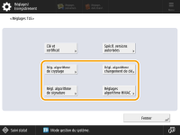 Si vous réglez <Formater Méthode de cryptage en FIPS 140> sur <Oui>, vous pouvez mettre en conformité la méthode cryptage de communication TLS avec la norme FIPS (Federal Information Processing Standards) 140 approuvée par l'administration américaine. <Formater Méthode de cryptage en FIPS 140>