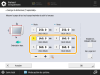 Ce paramètre vous permet de corriger la forme de l'image en égalisant la longueur des côtés droit et gauche de la zone d'impression lorsque l'image est imprimée comme un trapèze.