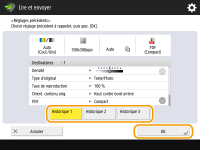 ![]() | Vous pouvez rappeler les destinations spécifiées dans le passé. Leurs paramètres de numérisation comme la densité sont aussi rappelés en même temps. |