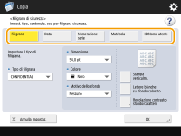 ![]() | Quando si copiano documenti che contengono informazioni riservate, è possibile incorporare del testo invisibile come "TOP SECRET" o "RISERVATO" per avvisare gli utenti non autorizzati di non copiarli. Quando si copia un documento che è già stato copiato, il testo incorporato compare in tutta la pagina, impedendo copie non autorizzate delle copie. Opzioni di sistema A seconda della macchina in uso, questa funzione è disponibile per impostazione predefinita. |