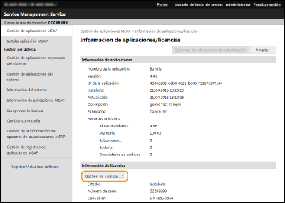 Haga clic en [Gestión de licencias] y realice la operación deseada.
