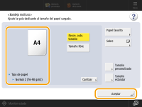 Compruebe el tamaño y el tipo de papel, y pulse <Aceptar>.