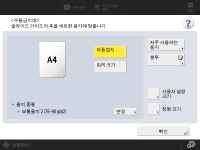 <확인>을 누릅니다. 수동 급지대에서 자주 사용하는 용지 크기 및 종류 등록