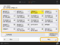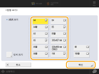 2 | 용지 크기를 선택하고 <확인>를 누릅니다. |