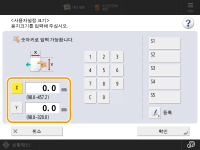 <X> 또는 <Y>를 눌러서 숫자 키를 사용하여 양쪽의 길이를 입력합니다. ![]() 자주 사용하는 용지 크기를 <S1>부터 <S5>까지 버튼에 등록하면 버튼만 눌러서 불러낼 수 있습니다. 프리 사이즈 용지 등록(사용자 정의 크기 용지) | |