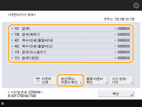 이 화면에서 각 MEAP 애플리케이션의 카운터 정보를 확인할 수도 있습니다. 2단계의 화면에서 <MEAP 카운터 확인>을 누릅니다. 같은 화면에서 <기기 정보/기타> <디바이스 구성확인>을 누르면 기기에 설치된 옵션과 저장 장치 데이터 암호화에 사용되는 보안 칩 버전을 확인할 수 있습니다.
