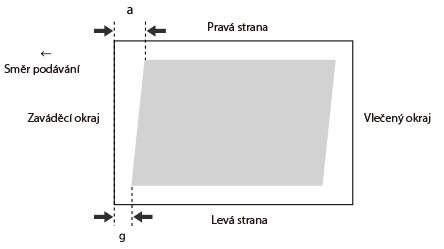 Toto nastavení umožňuje korekci tvaru obrazu vyrovnáním vzdálenosti od „a“ a „g“ k zaváděcímu okraji papíru v případě, že se obraz vytiskne jako kosoúhelník.