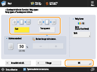 For at samkopiere formularbilledet uden at justere tætheden skal du trykke på <Fast>. For at samkopiere formularbilledet med formindsket tæthed skal du trykke på <Transparent> og justere tætheden.