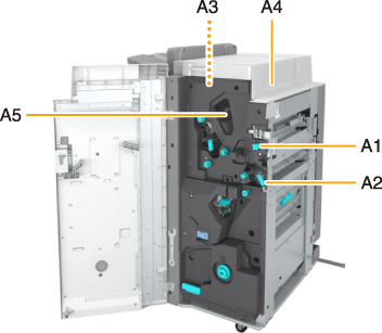 Hvis Puncher Unit-BT eller Puncher Unit-BU er monteret, skal du trykke knappen (A1) så langt, den kan komme.