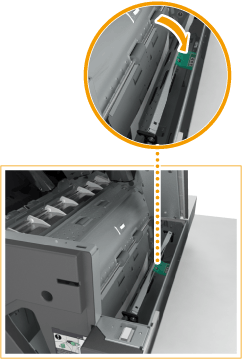 Hvis Booklet Trimmer-G er monteret, føres det fastklemte papir frem til fremføringsbæltet i Booklet Trimmer-G, når du drejer på knappen.